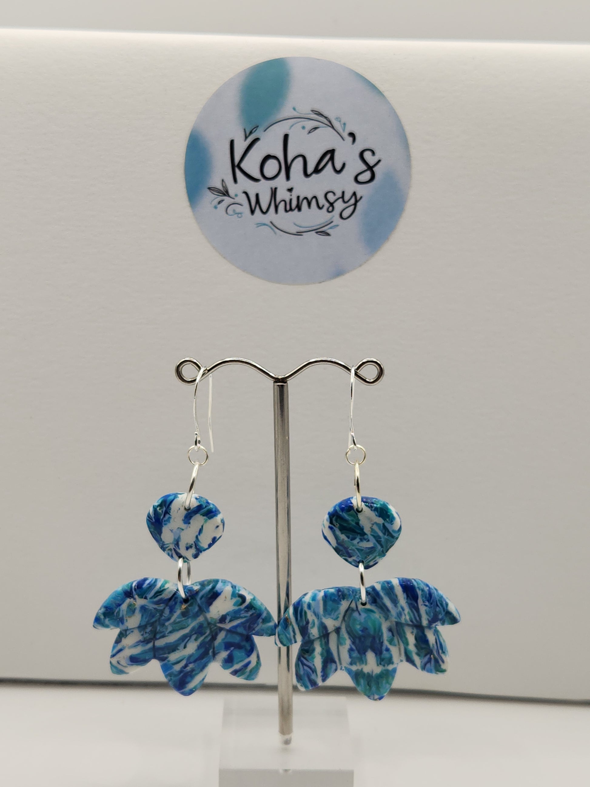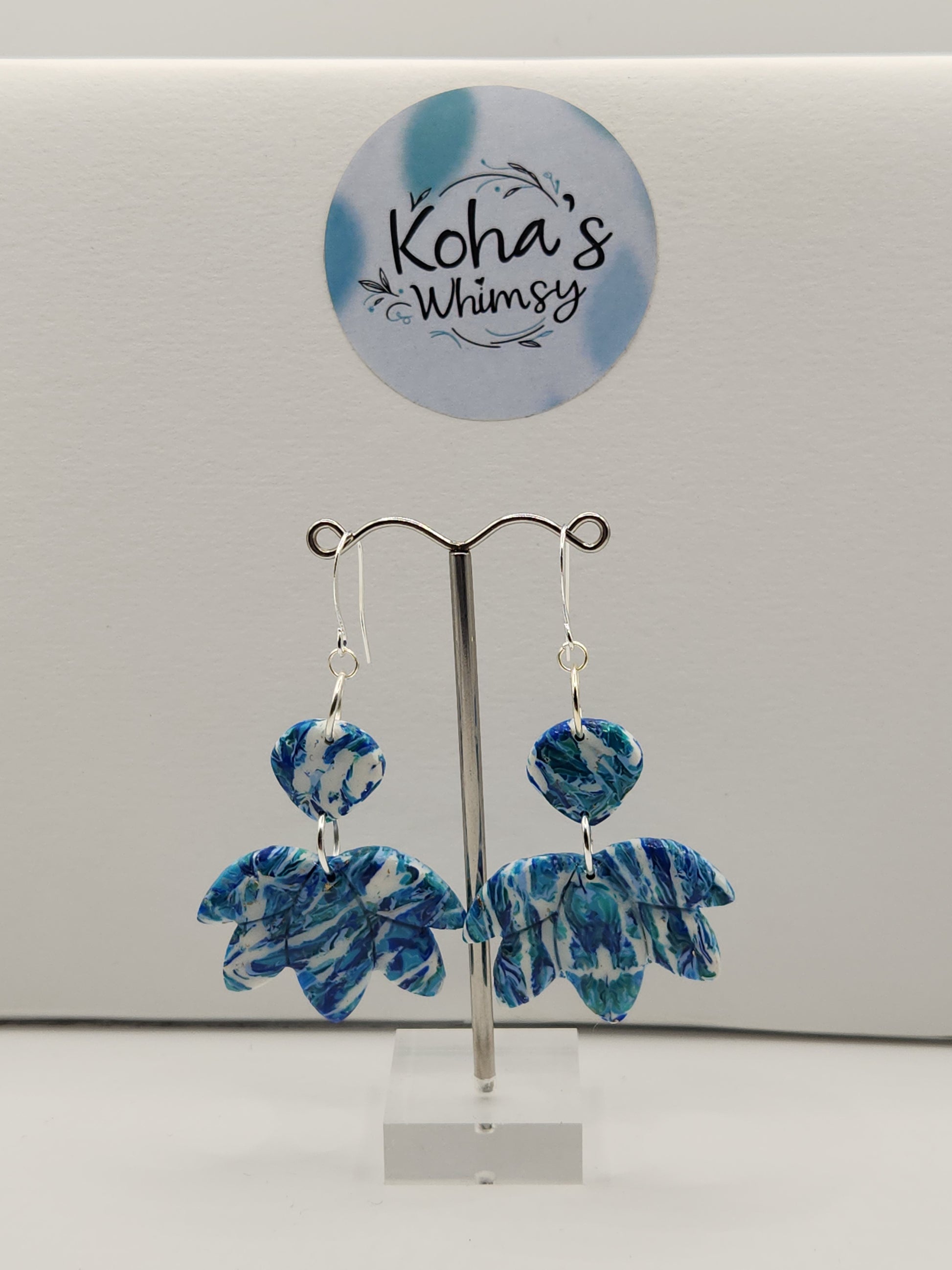 Cerulean Swirl Large Lotus Blossom Dangle Earrings