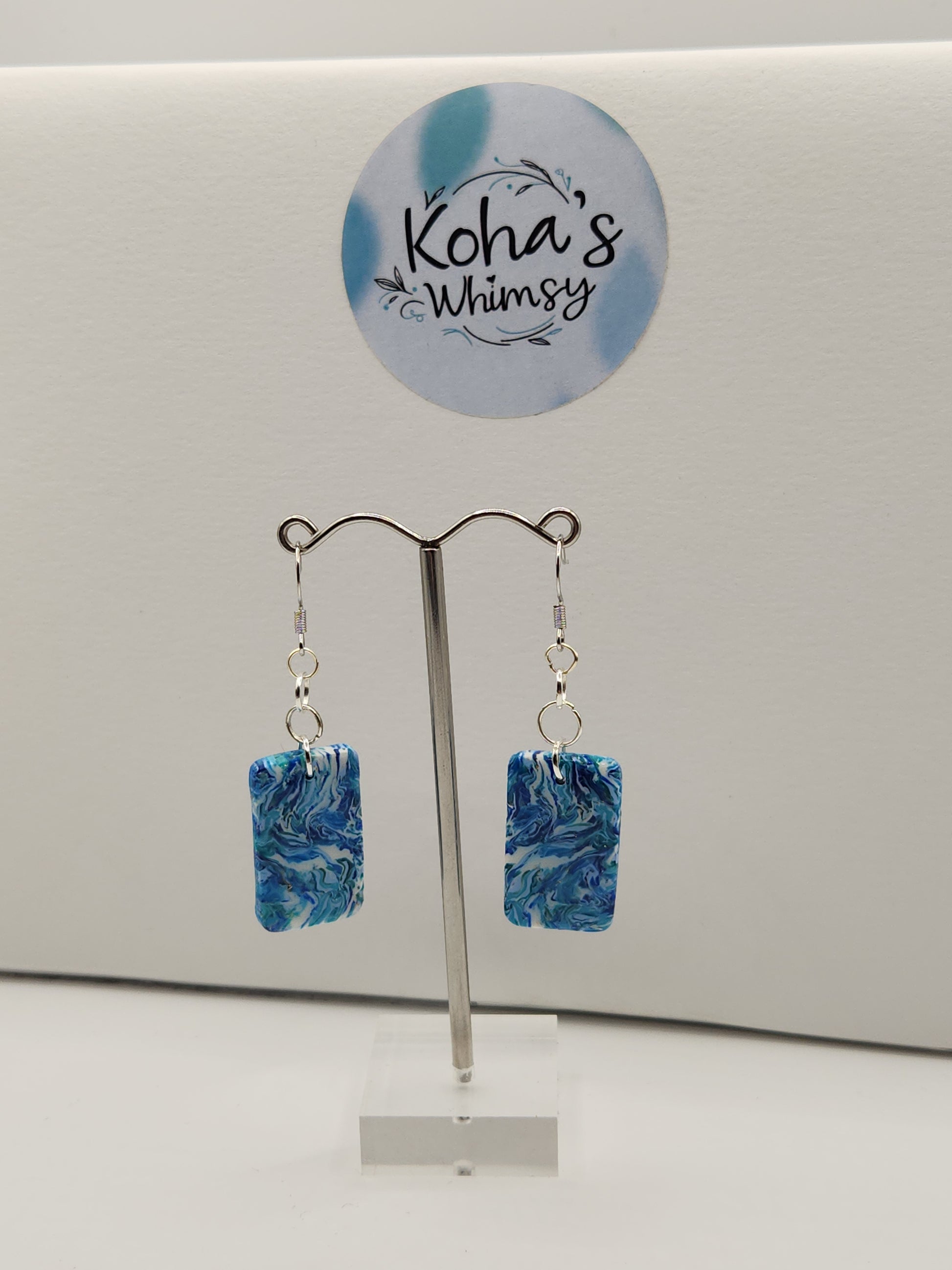 Cerulean Swirl Small Rectangle Dangle Earrings