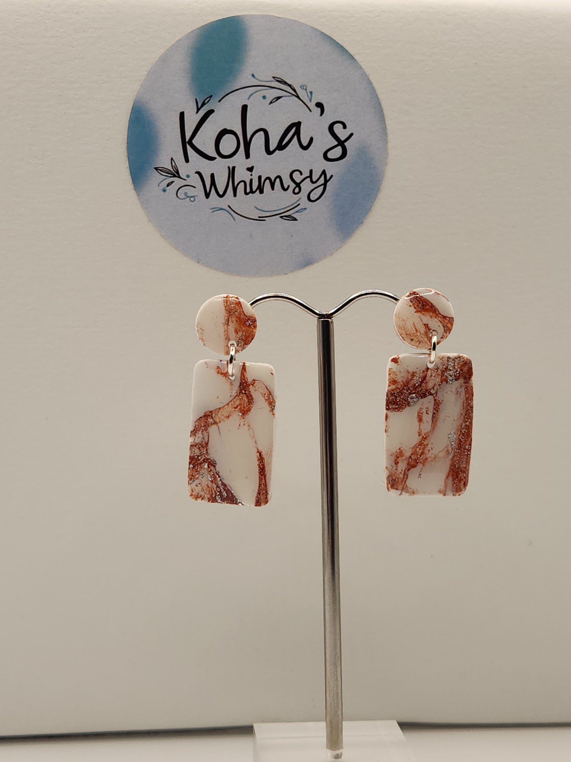 This Copper Howlite Jewellery Set features expertly crafted handmade polymer clay pieces inspired by the unique patterns of copper-dyed howlite. The set includes delicate small rectangle and circle stud earrings, paired with a necklace pendant showcasing three circles that increase in size, creating a harmonious and elegant design. Each piece offers a lightweight, durable accessory that brings a sophisticated touch to any outfit. Ideal for those who appreciate artisanal craftsmanship and distinctive natural-inspired aesthetics.