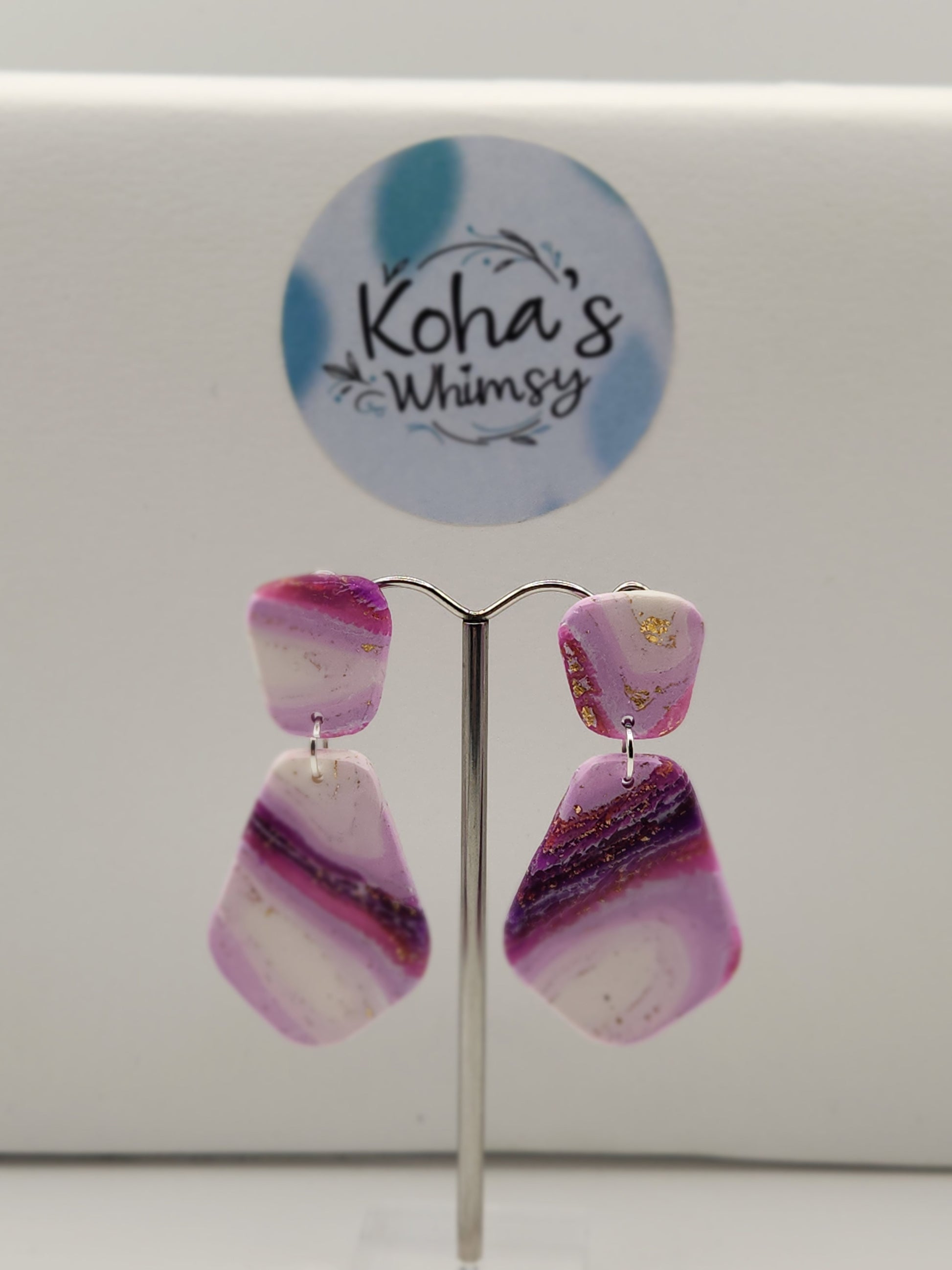 These handmade polymer clay earrings capture the delicate beauty of purple lace agate with their designs. Expertly crafted, they offer a lightweight yet durable accessory that complements both casual and formal styles. Their unique pattern and subtle hues provide a sophisticated touch, making them an elegant addition to any jewellery collection.