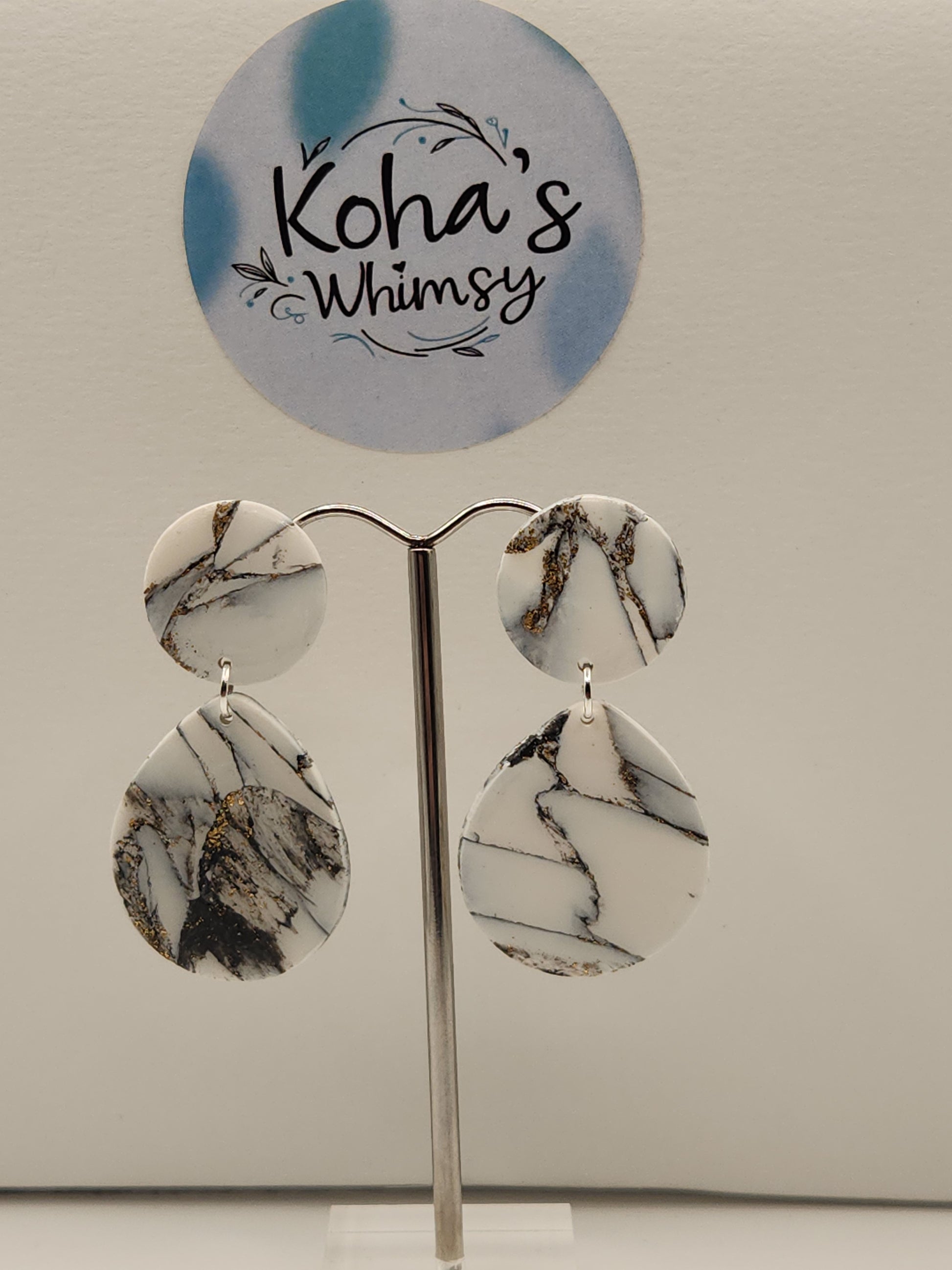 These howlite earrings are meticulously handcrafted from polymer clay, capturing the distinctive veining and calming aesthetic of natural howlite. Their lightweight design ensures comfortable wear, while the elegant drop shape adds a sophisticated touch to any outfit. Perfect for those seeking unique, artisan jewellery with a natural stone-inspired look