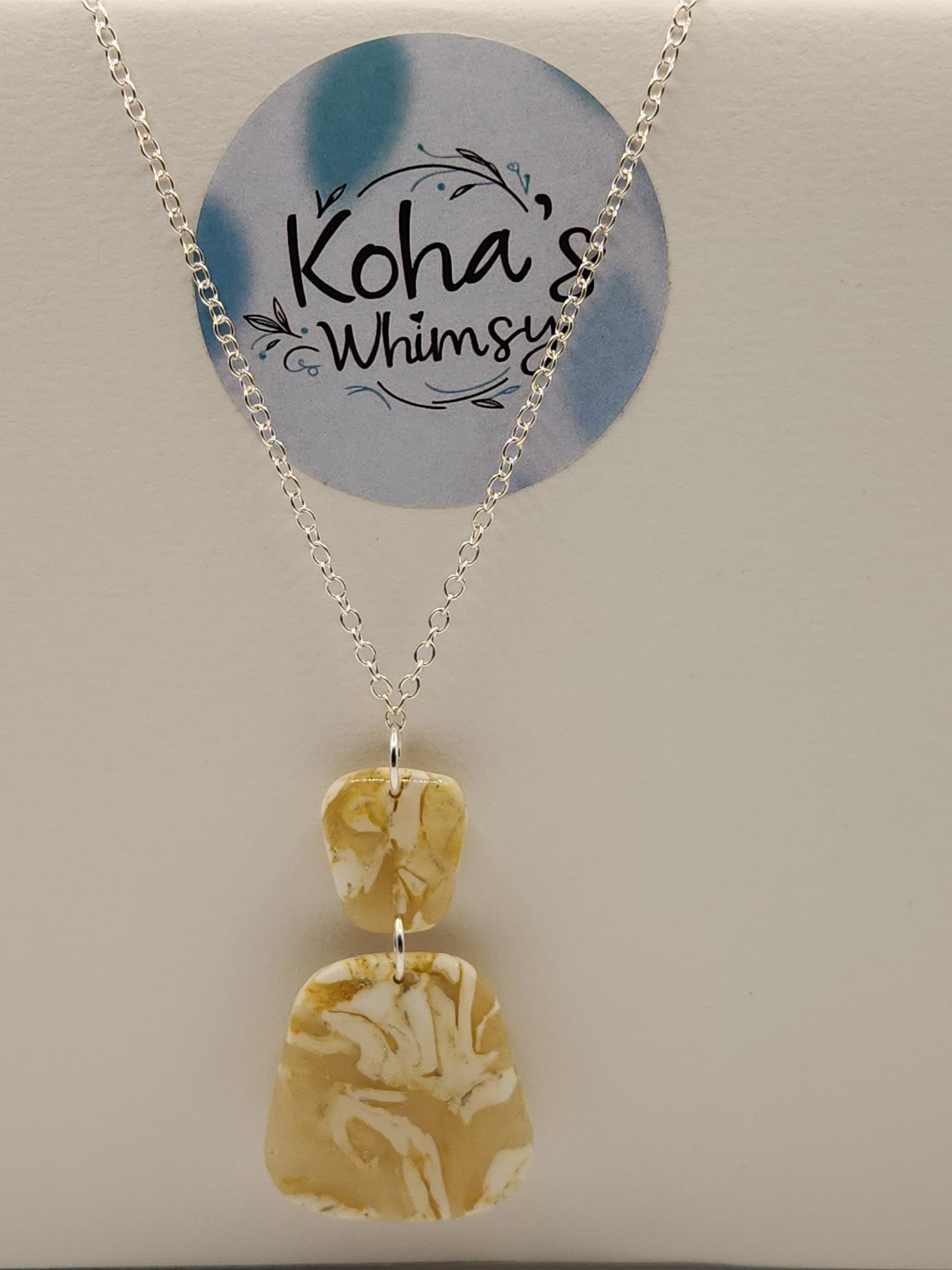 Crafted from handmade polymer clay, this Lemon Howlite Large Quadrangle Necklace draws inspiration from lemon-dyed howlite stones. Its design features translucent sections that create a captivating depth, highlighting the intricate texture and vibrant hues. This expert piece combines artistry and subtle elegance, making it a distinctive accessory for those who appreciate refined craftsmanship.