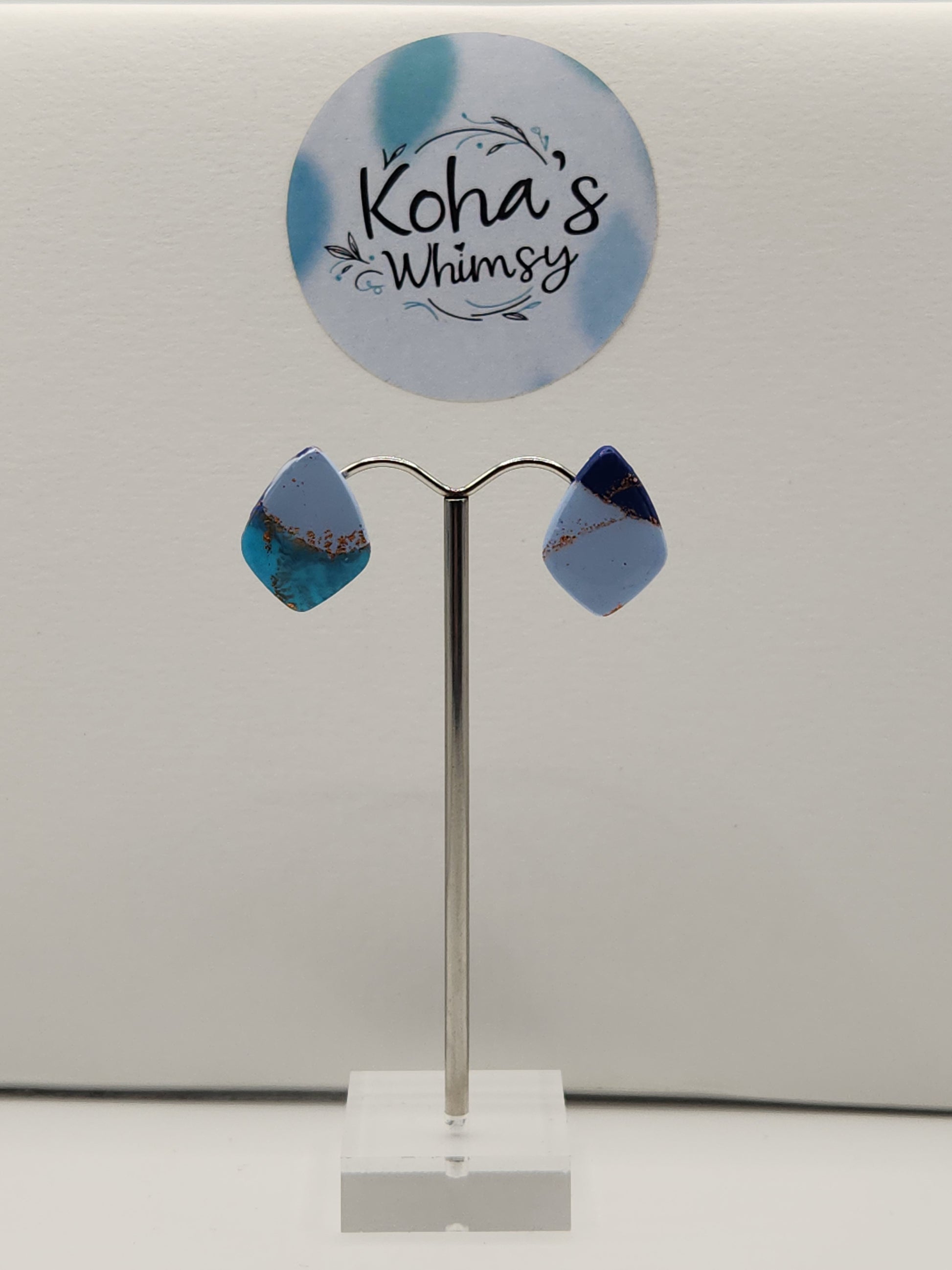These Ocean Vibes earrings are meticulously handmade from polymer clay, inspired by the diverse blues of the ocean. Featuring subtle copper foil detailing, they combine artisanal craftsmanship with elegant design. Lightweight and durable, these earrings offer a refined accessory that reflects the serene beauty of the sea.