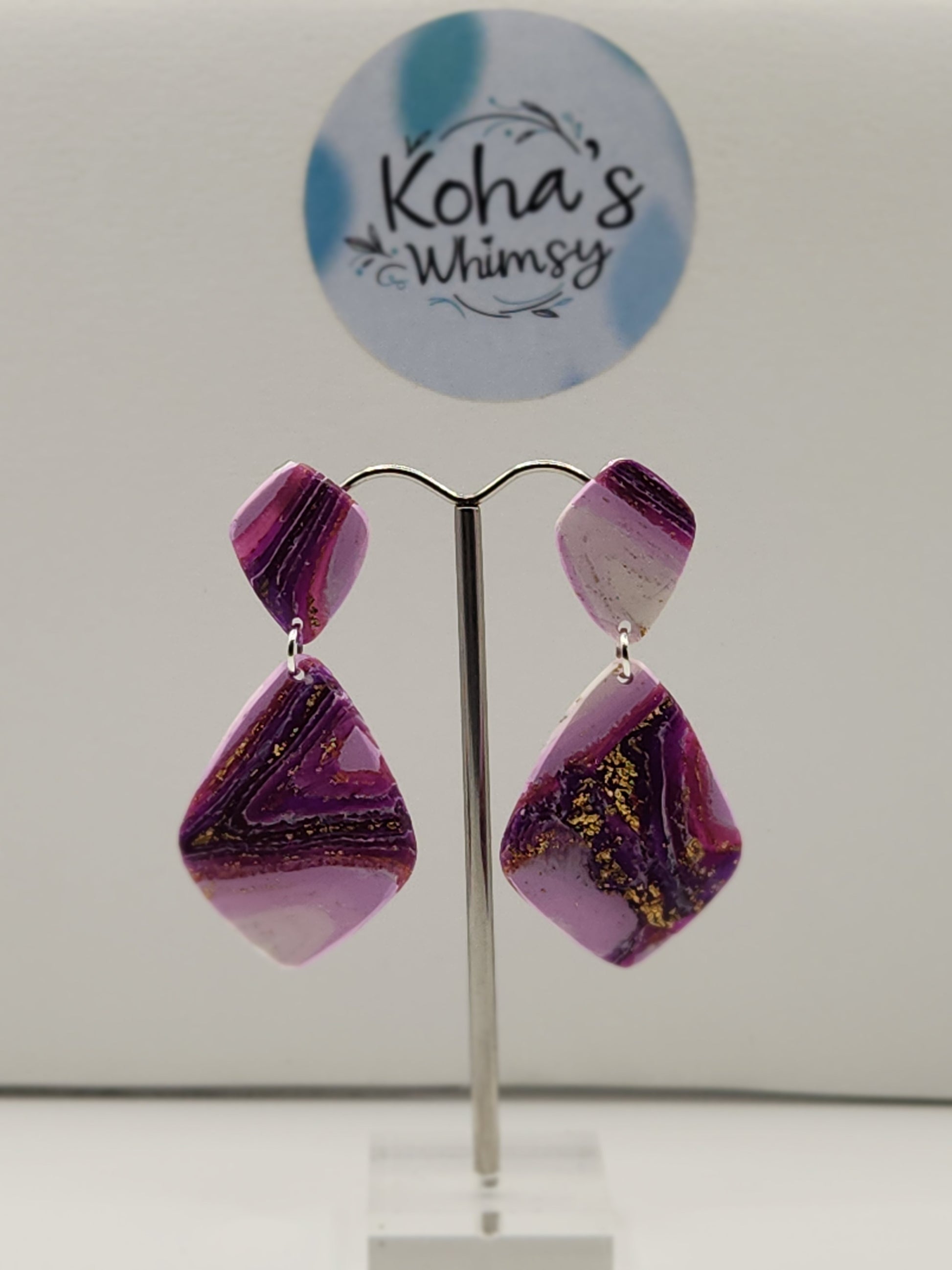 These handmade polymer clay earrings capture the delicate beauty of purple lace agate with their designs. Expertly crafted, they offer a lightweight yet durable accessory that complements both casual and formal styles. Their unique pattern and subtle hues provide a sophisticated touch, making them an elegant addition to any jewellery collection.