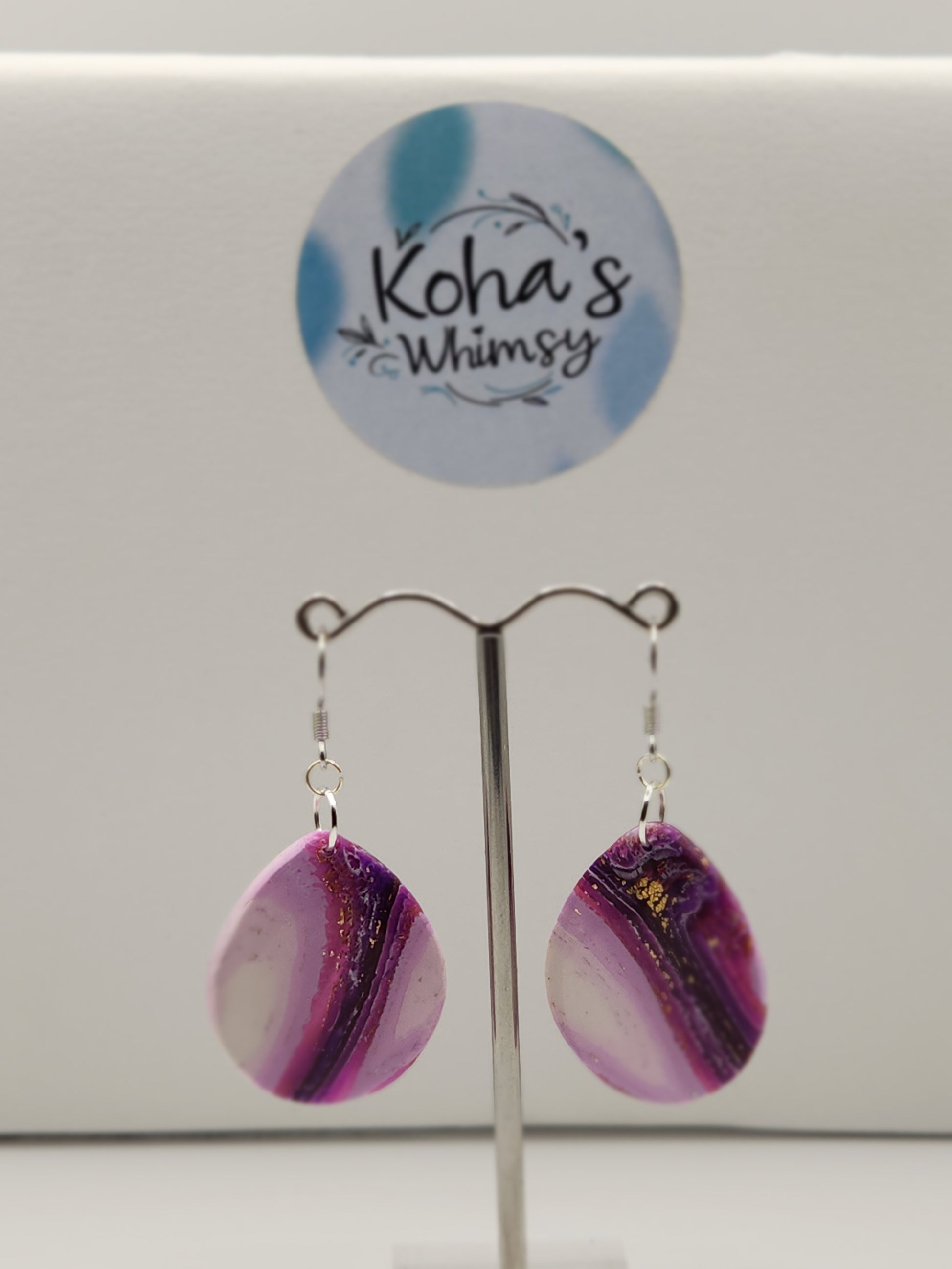 These handmade polymer clay earrings capture the delicate beauty of purple lace agate with their designs. Expertly crafted, they offer a lightweight yet durable accessory that complements both casual and formal styles. Their unique pattern and subtle hues provide a sophisticated touch, making them an elegant addition to any jewellery collection.
