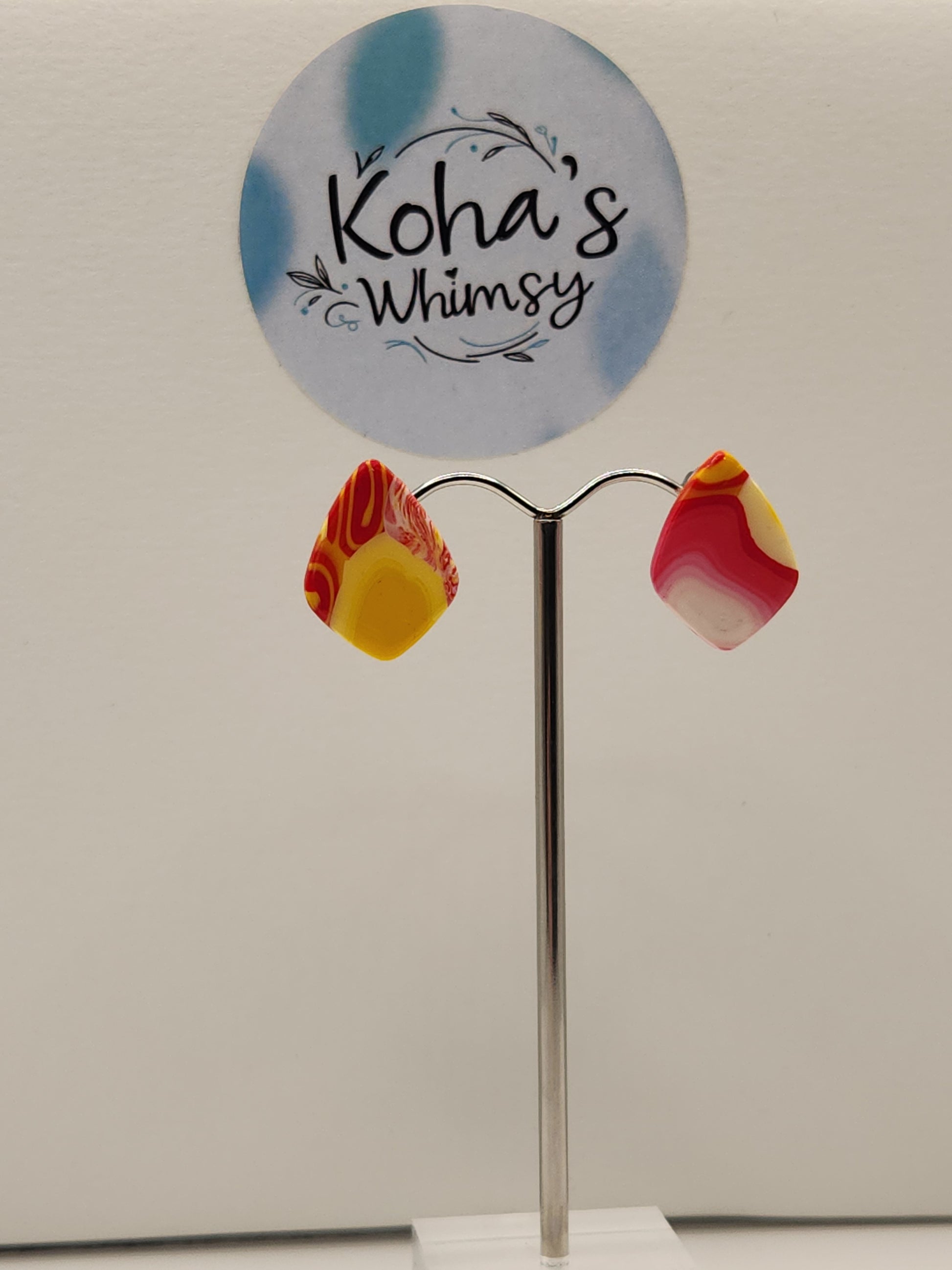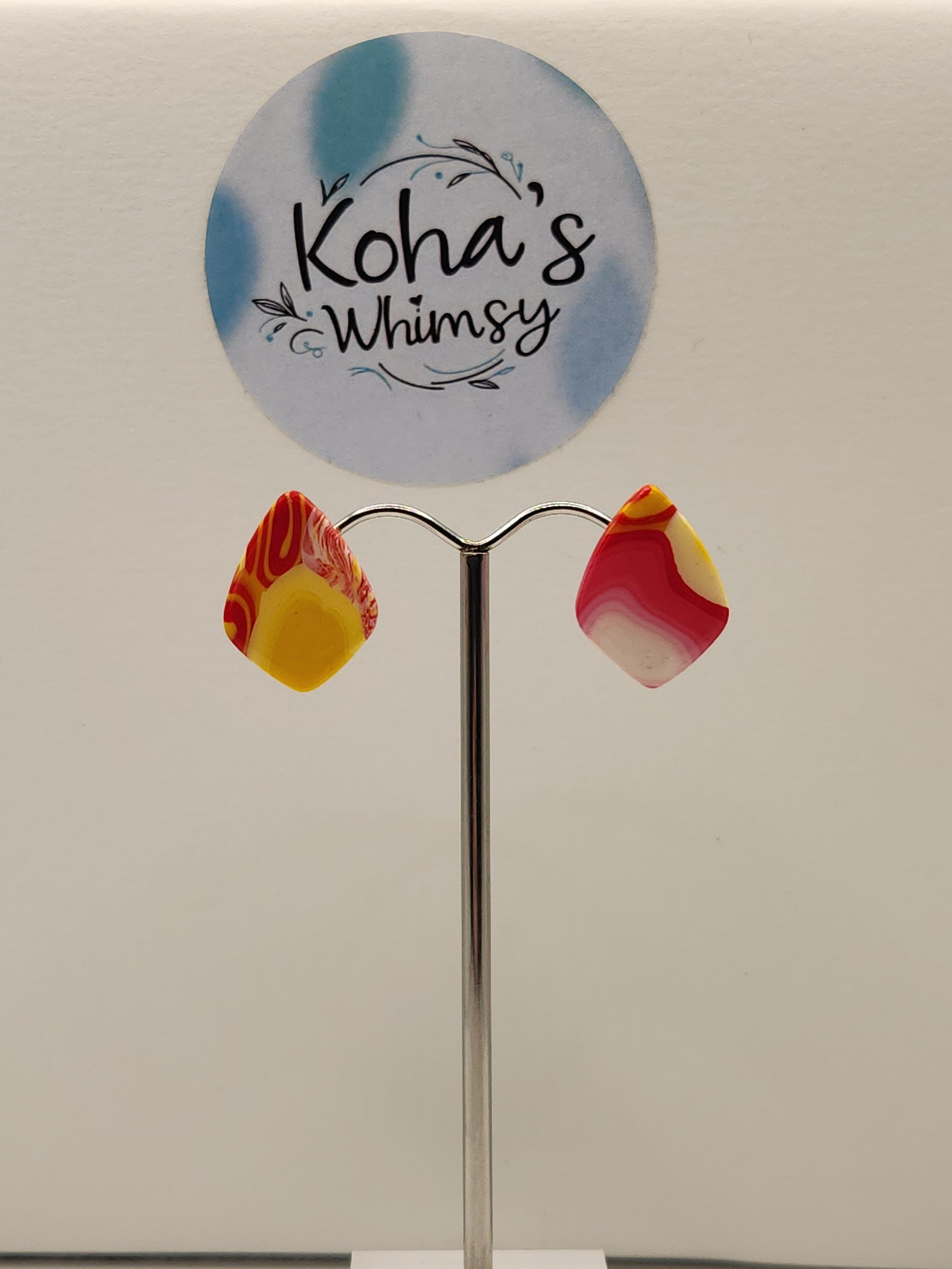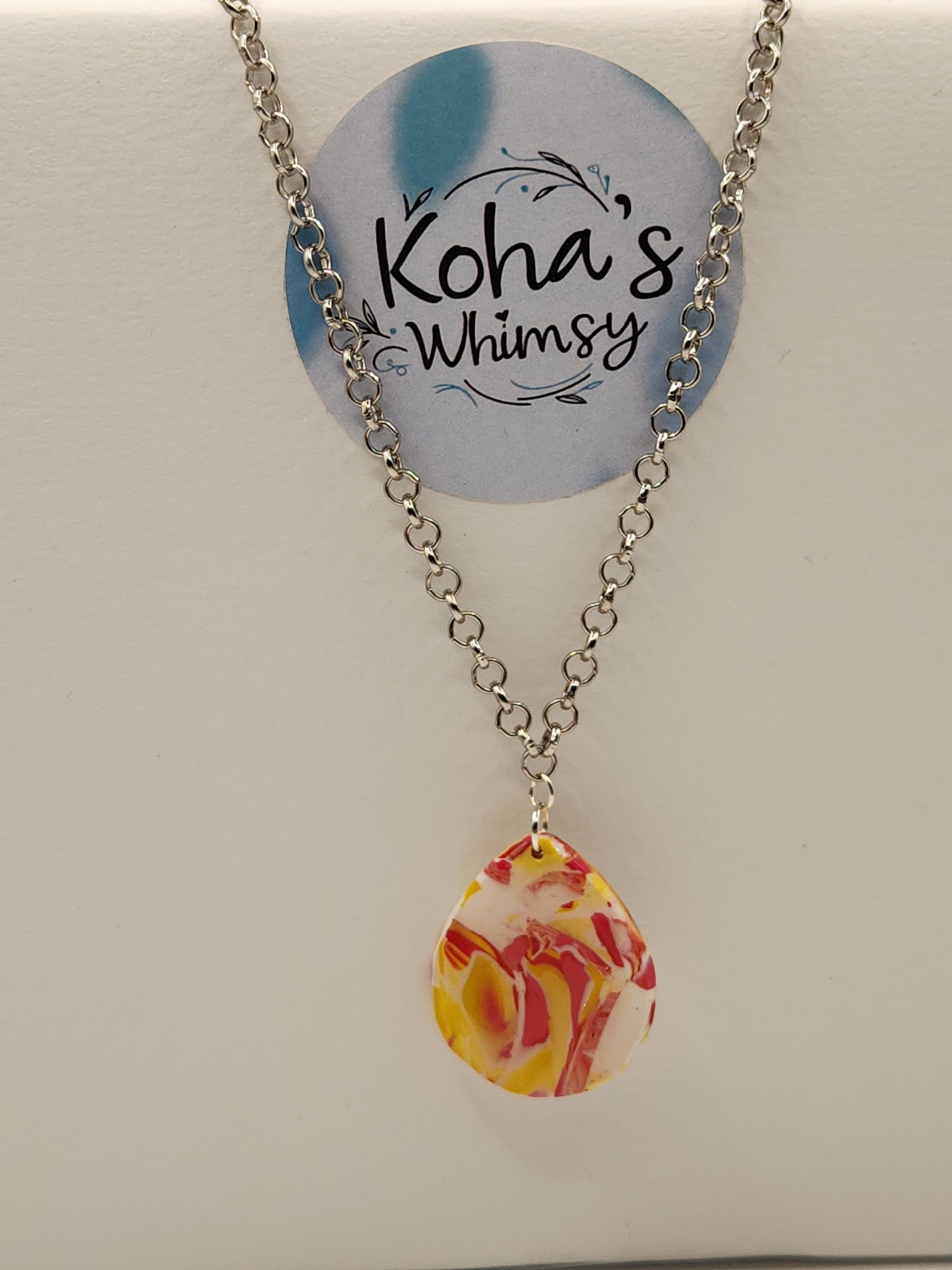 This Raspberry Lemonade Jewellery Set features expertly handcrafted polymer clay pieces, including delicate small drop diamond stud earrings and a striking large teardrop pendant necklace. Each item showcases a sophisticated gradient blends from white to red and white to yellow, capturing the refreshing essence of raspberry lemonade. Crafted with expert attention to detail, this set combines playful hues with refined design for everyday elegance.
