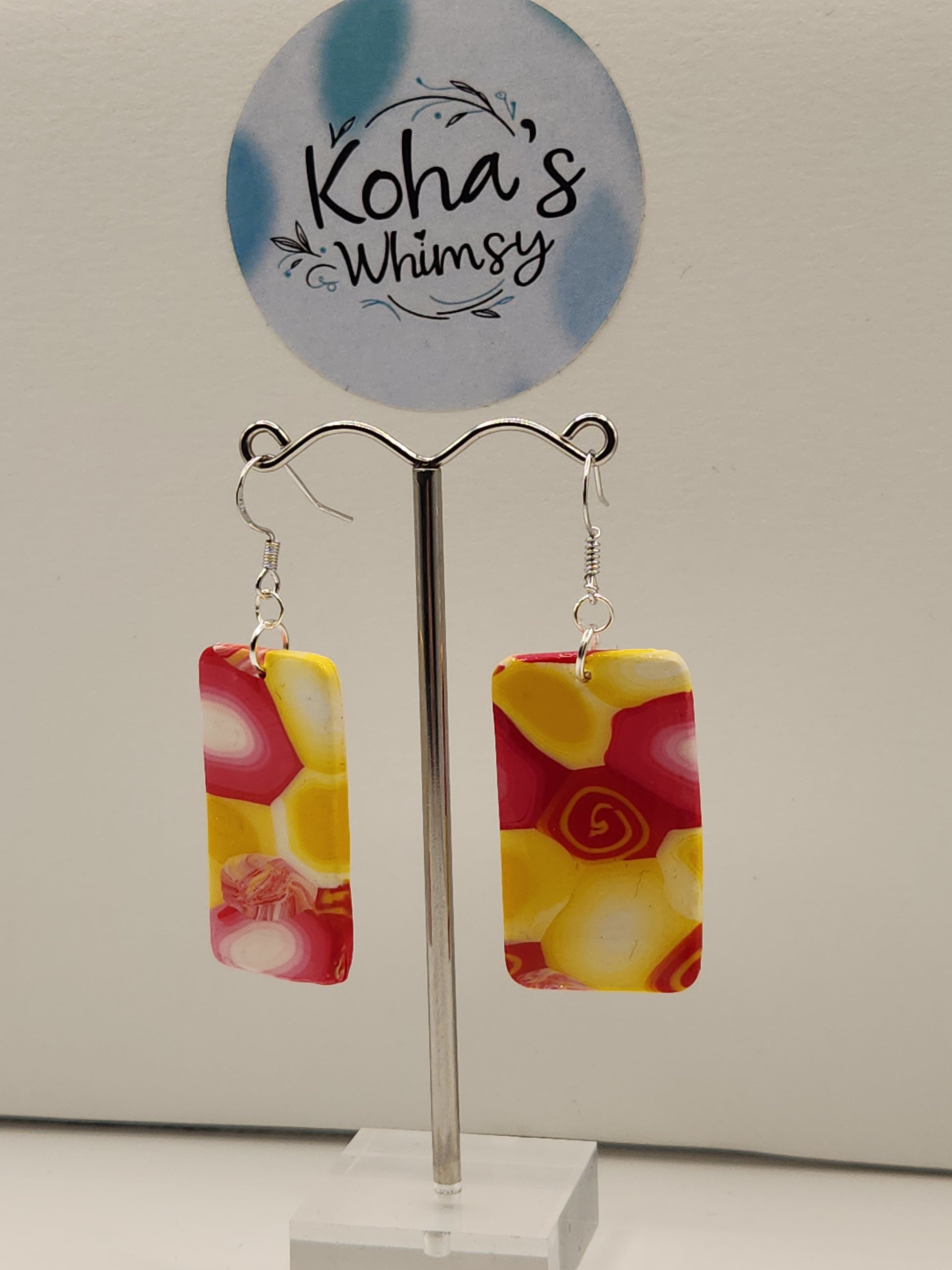 Raspberry Lemonade Large Rectangle Dangle Earrings