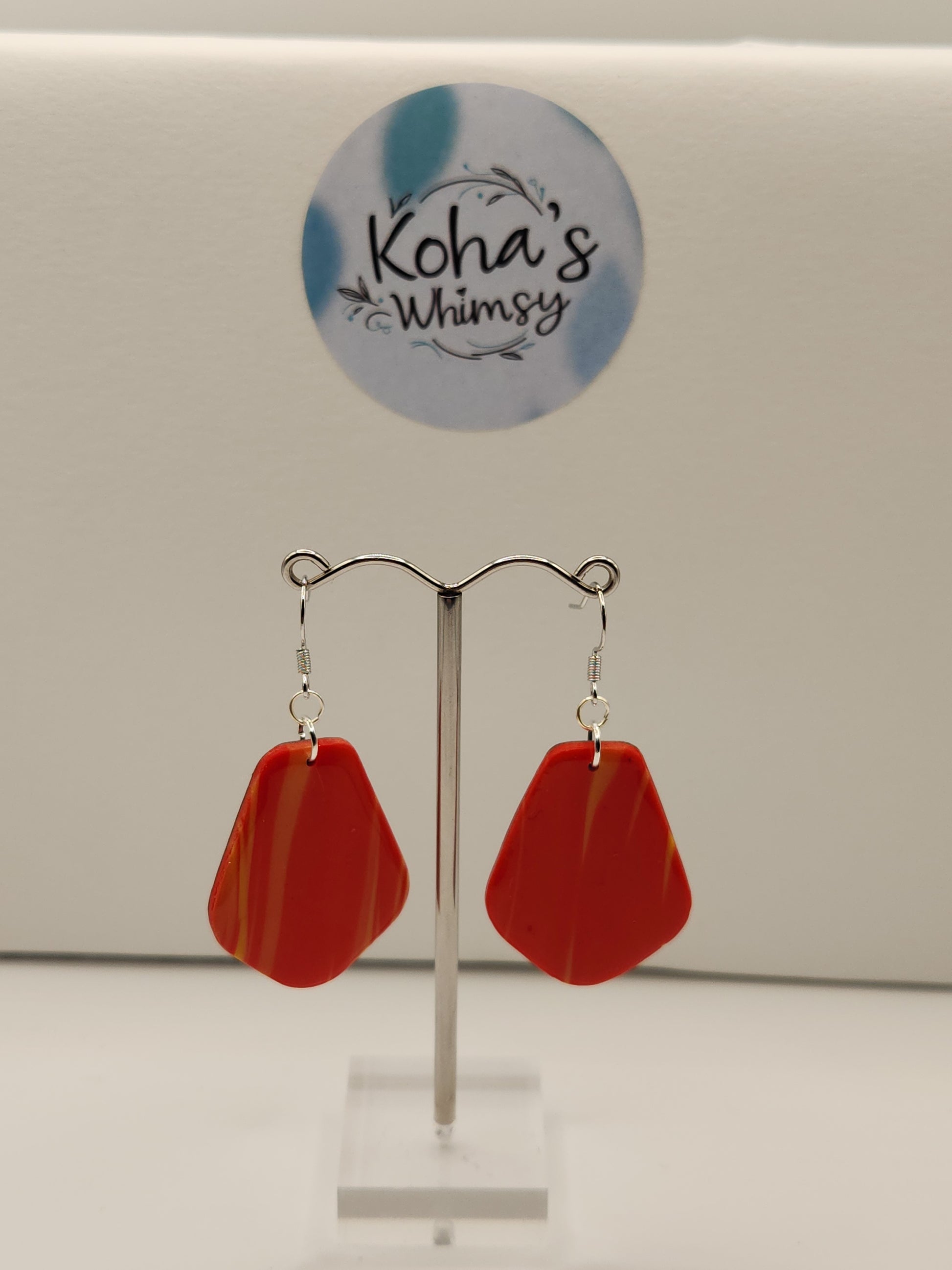 These Ruby Sunrise earrings showcase expert craftsmanship with handmade polymer clay featuring a vibrant red base accented by dynamic yellow streaks. Their bold colour combination and lightweight design make them a striking accessory that adds a sophisticated pop of colour to any outfit. Perfect for those who appreciate artisanal detail and unique statement jewellery.