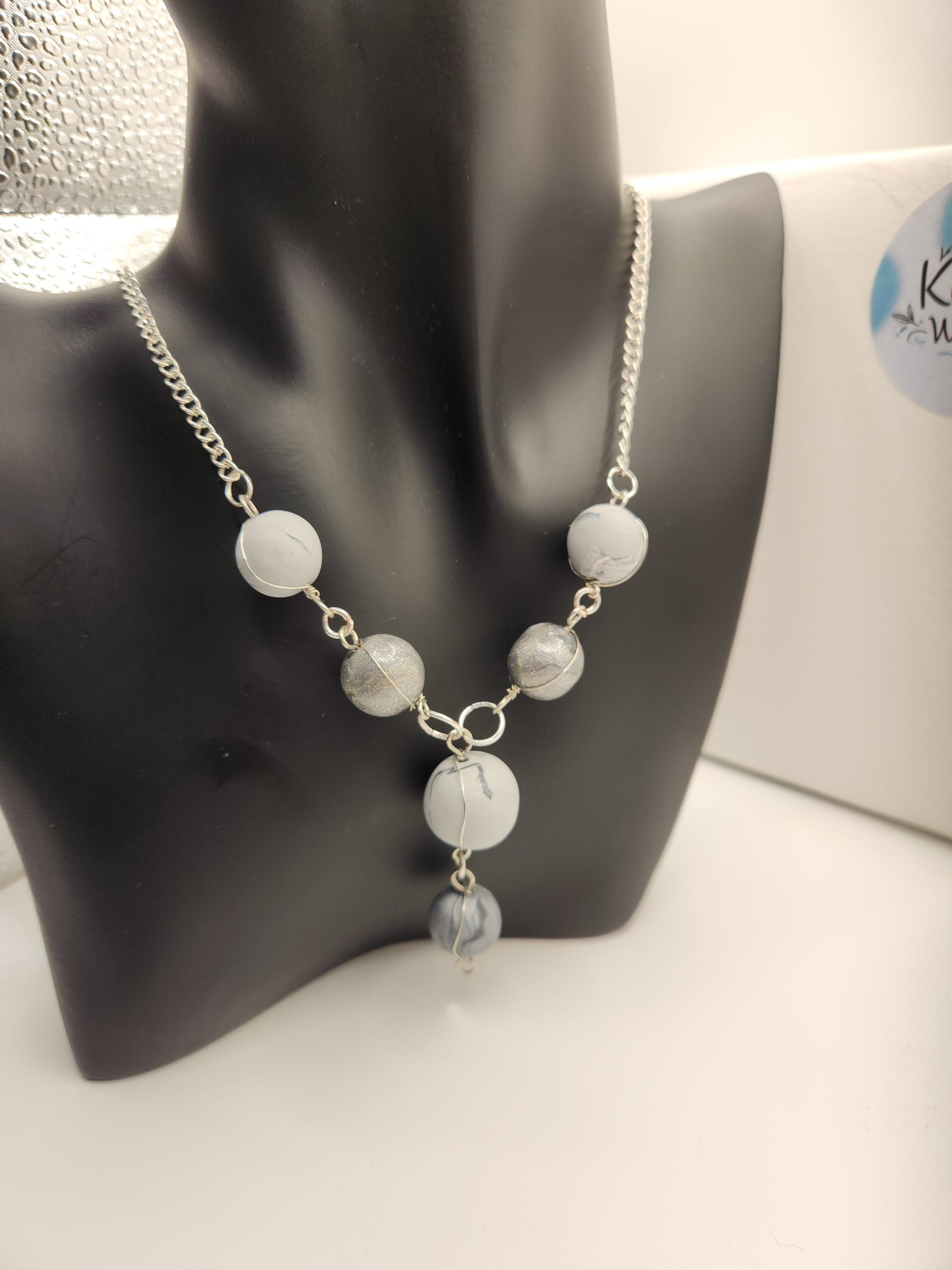 Crafted with meticulous attention to detail, this necklace features hand-shaped silver polymer clay beads, each secured with delicate wire wrapping that enhances their natural beauty. The artisanal construction creates a refined piece that transcends fleeting trends, offering enduring sophistication for the discerning wearer. The interplay between wrapped wire and silvered surfaces produces subtle luminosity and texture. Lightweight yet commanding presence, this handmade accessory elevates any ensemble with quiet confidence and authentic craftsmanship.