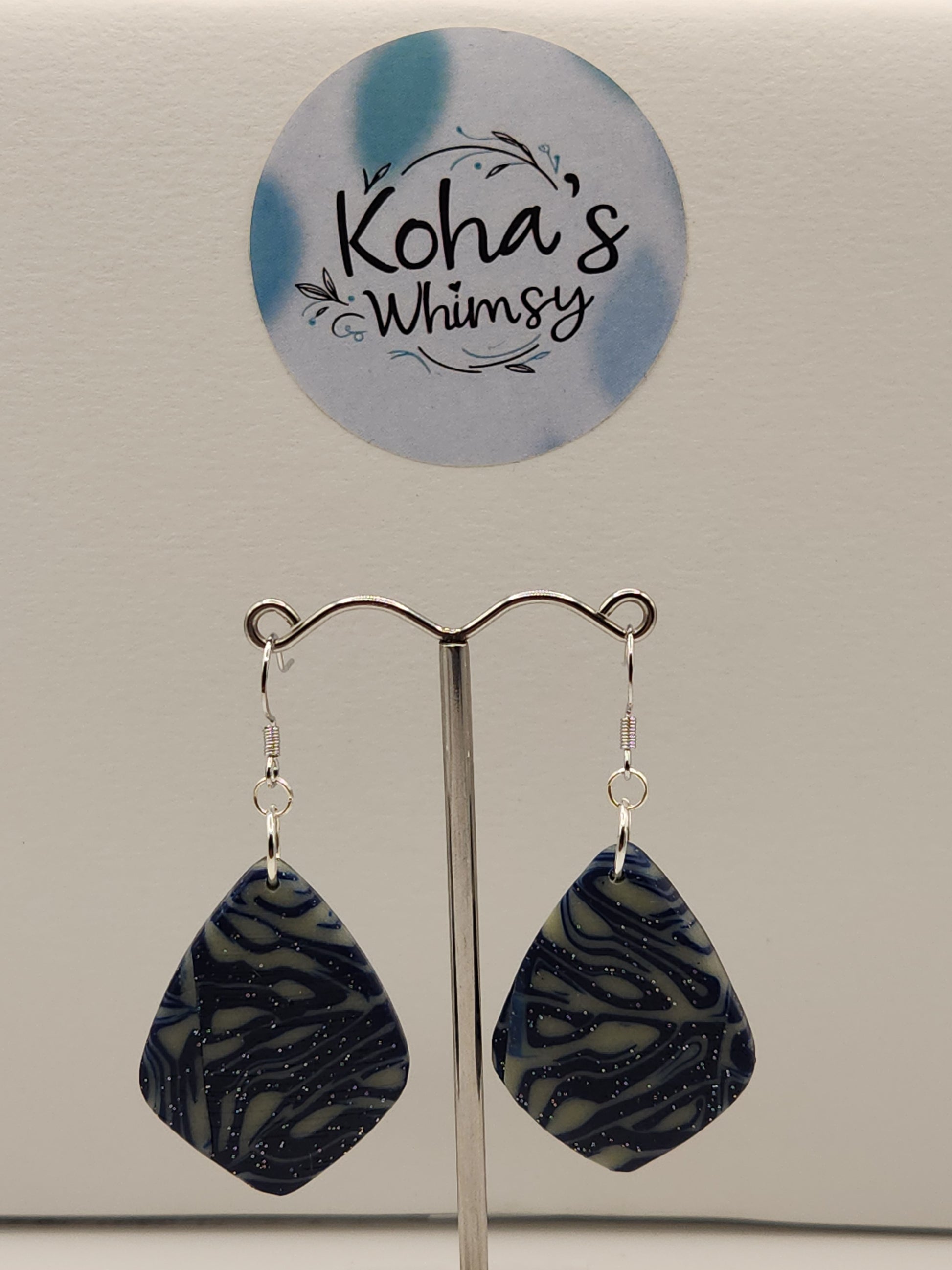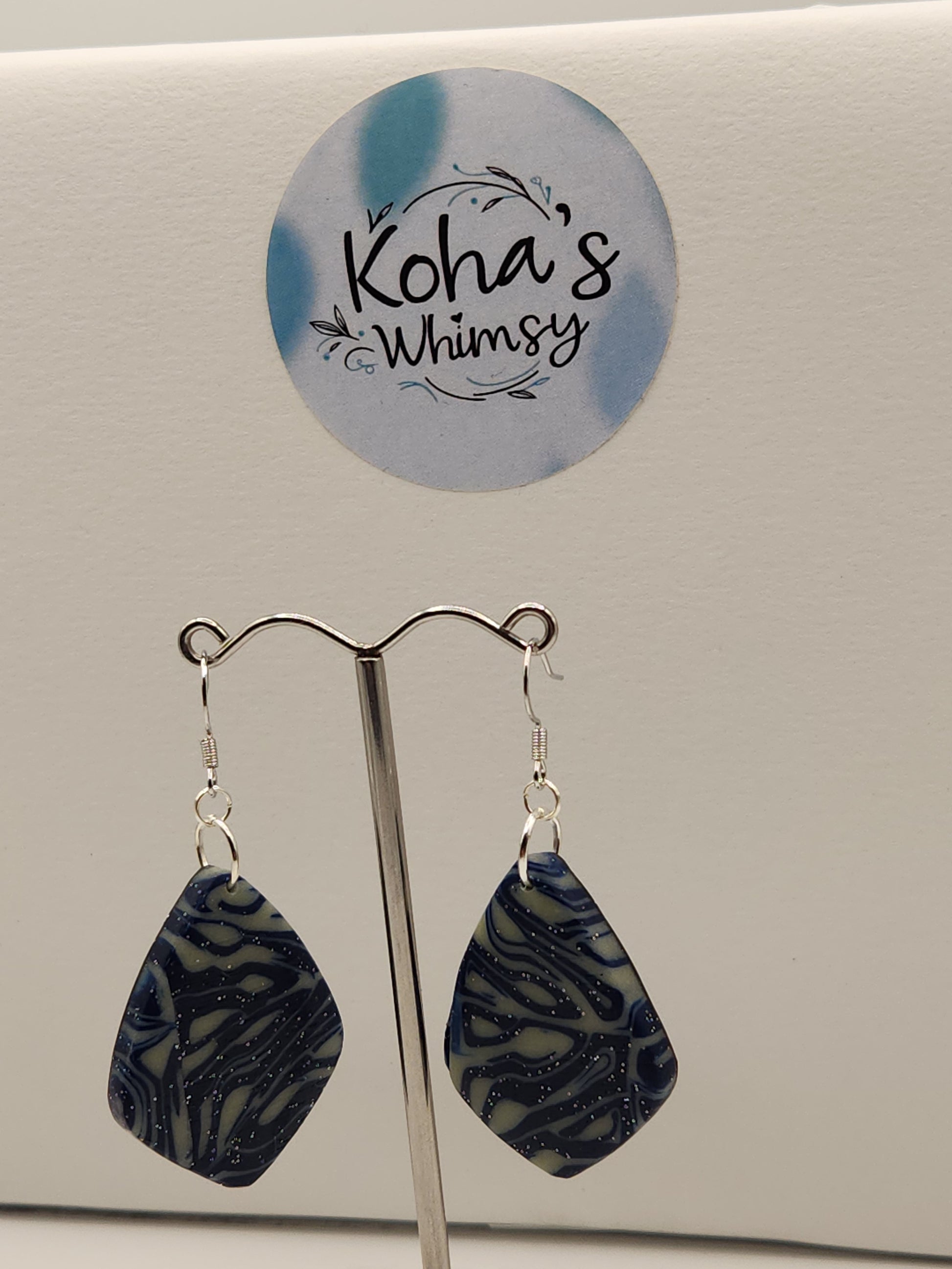 These handmade polymer clay earrings feature a sophisticated navy blue base enhanced with glitter and silver foil, creating a subtle yet captivating sparkle. Expertly crafted in a variety of shapes, they offer a unique blend of elegance and whimsy. As a distinctive touch, these earrings glow in the dark, adding an unexpected and enchanting element to your accessory collection. Perfect for those who appreciate artistry and a hint of magic in their jewellery.