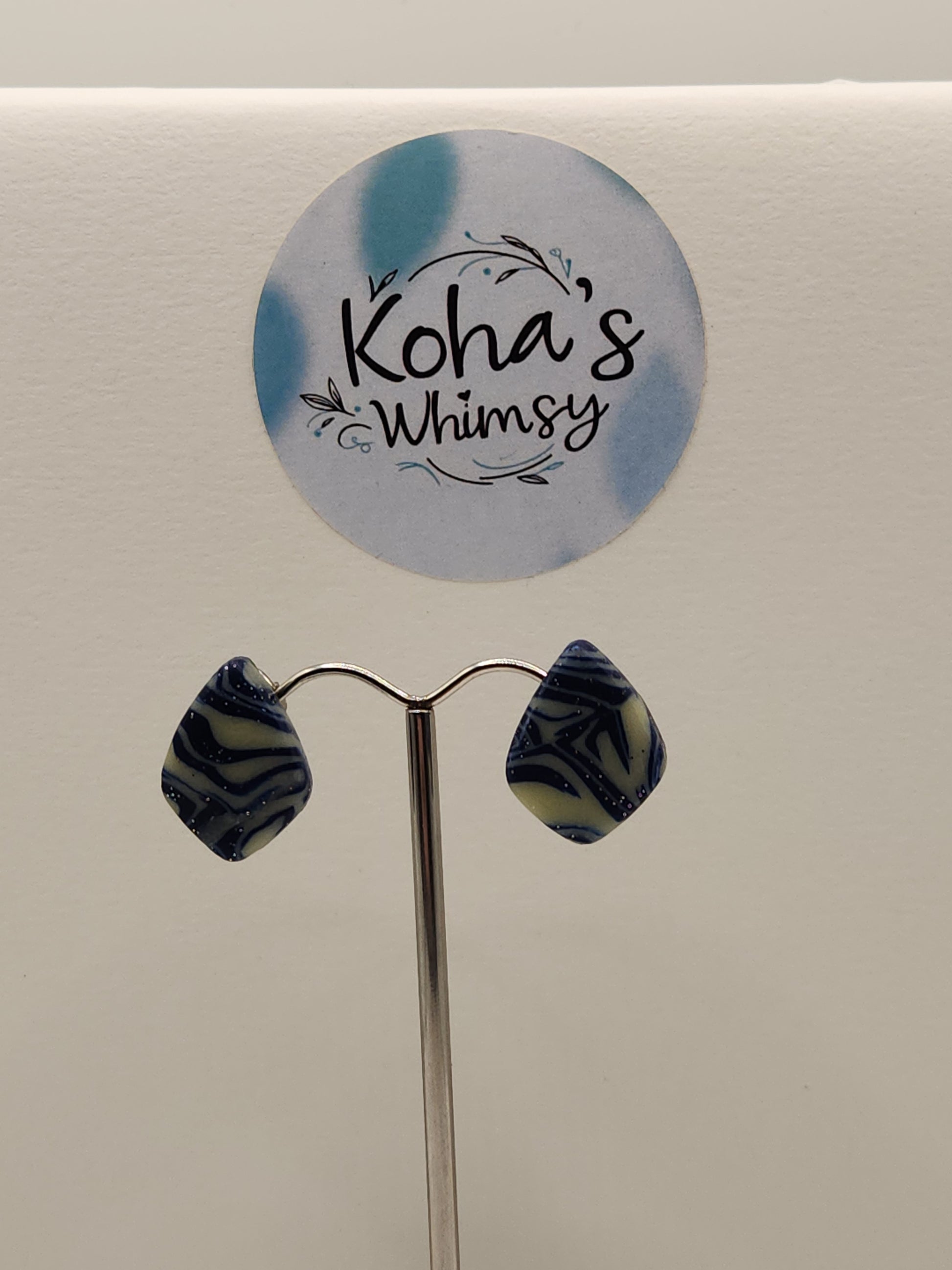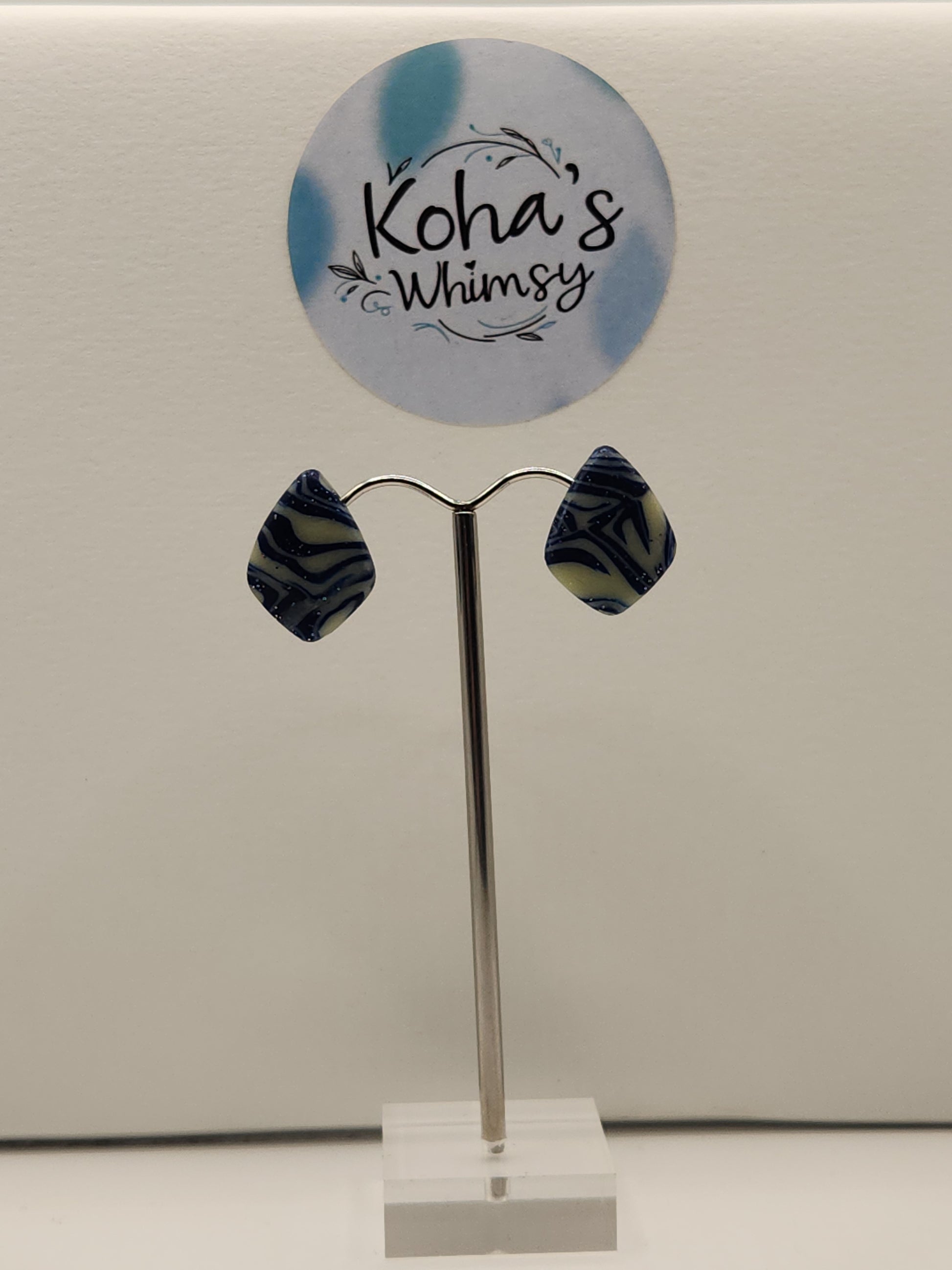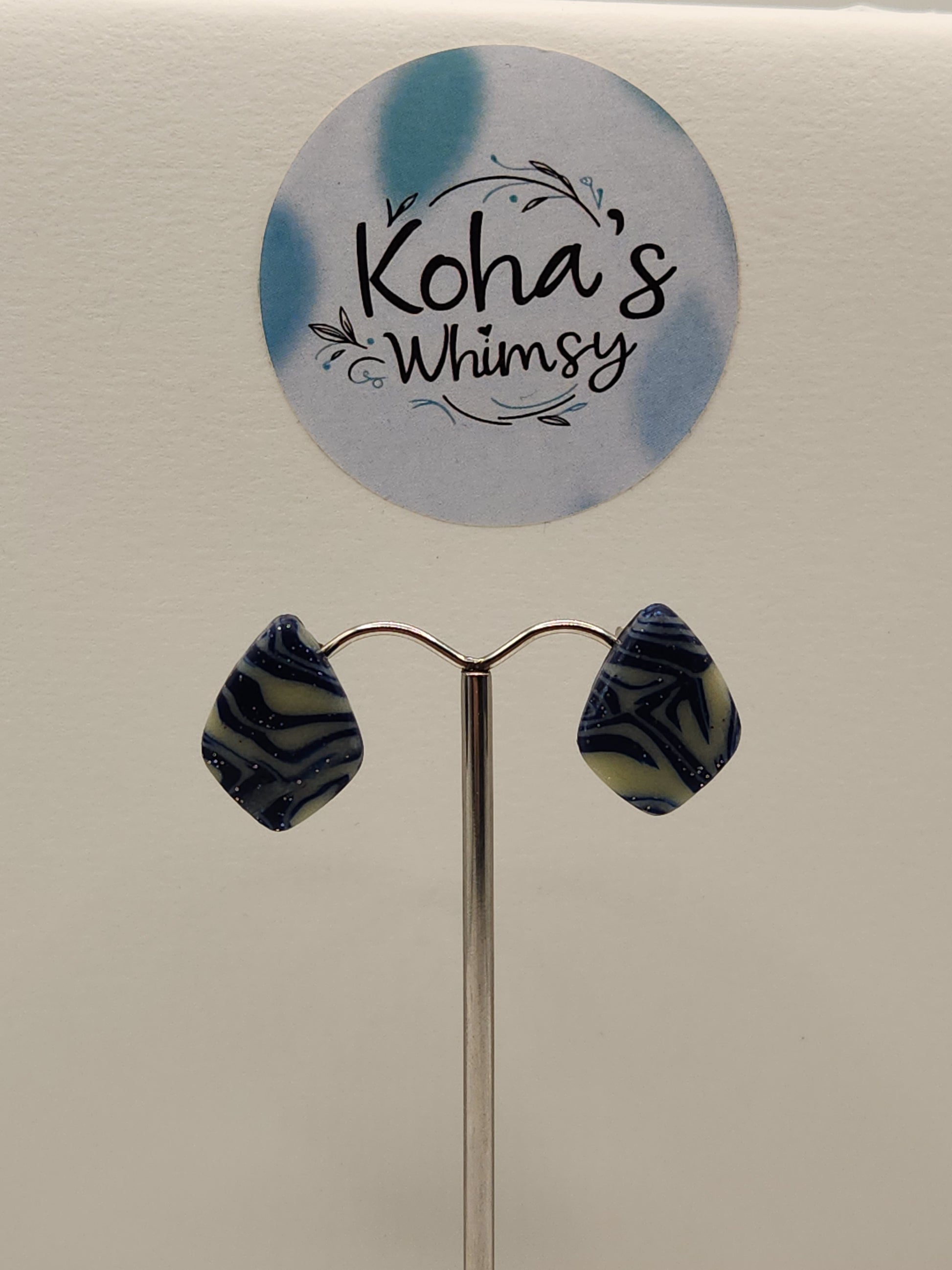 These handmade polymer clay earrings feature a sophisticated navy blue base enhanced with glitter and silver foil, creating a subtle yet captivating sparkle. Expertly crafted in a variety of shapes, they offer a unique blend of elegance and whimsy. As a distinctive touch, these earrings glow in the dark, adding an unexpected and enchanting element to your accessory collection. Perfect for those who appreciate artistry and a hint of magic in their jewellery.