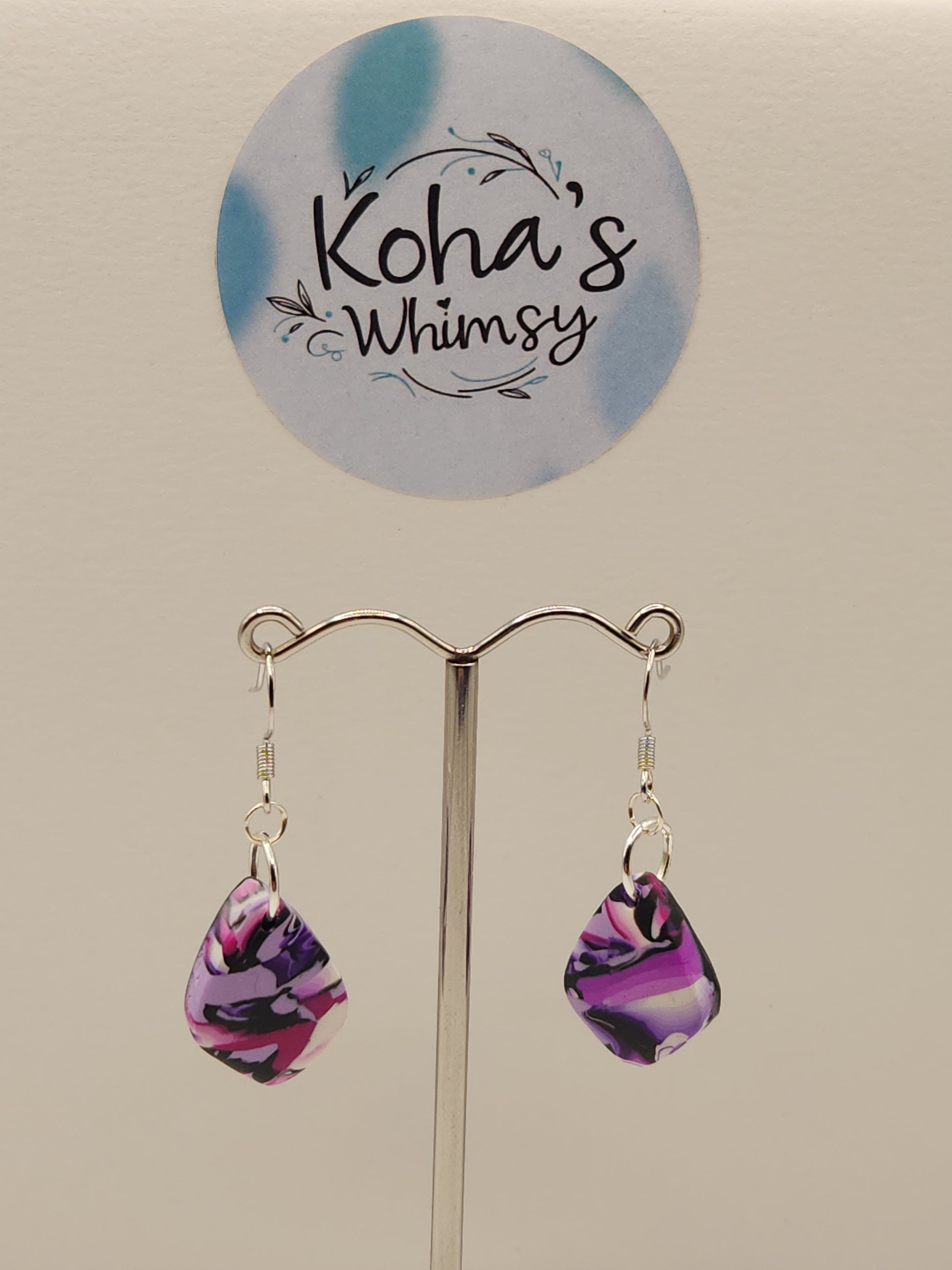 Elevate your style with the Violet Chaos Jewellery Set, featuring expertly handcrafted polymer clay earrings and a matching teardrop pendant necklace. The earrings showcase a dynamic blend of black with vibrant purples and pinks in a small drop diamond dangle design, offering a unique balance of boldness and elegance. Complemented by the teardrop pendant, this set delivers a sophisticated, artistic statement perfect for those who appreciate distinctive, high-quality accessories.